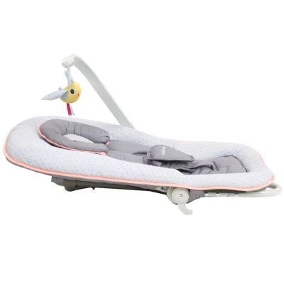– Ne pas placer, suspendre des ficelles autour du cour de l’enfant et au transat.