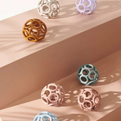 Le lot de 2 balles de dentition en silicone Jasmin mustard peppermint mix de la marque Liewood soulage les gencives douloureuses de bébé quand il fait ses dents.