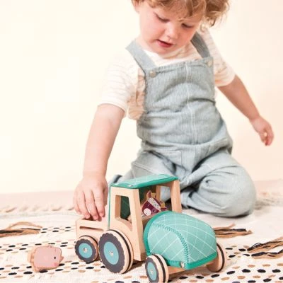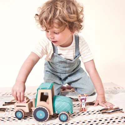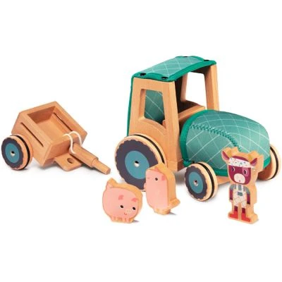 – Tracteur, remorque, Rosalie la vache et 2 cochons.