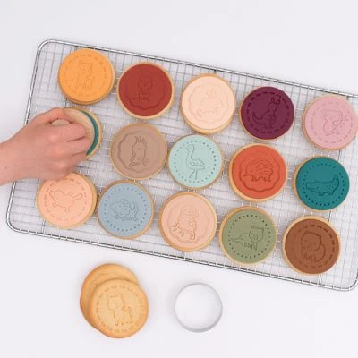 – Contient un manche, un emporte-pièce rond en acier inoxydable et 15 tampons interchangeables ornés d’illustrations créées par Little Vanilla Studio.