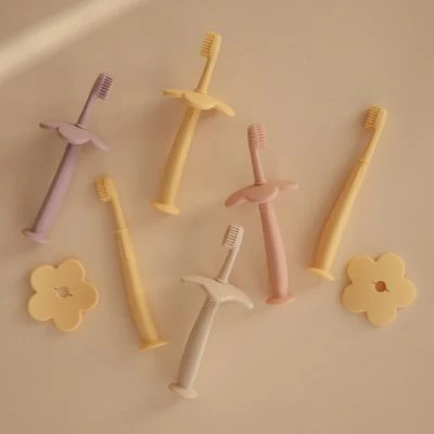 – Garde amovible en forme de fleur évitant d’enfoncer la brosse trop loin dans la bouche.