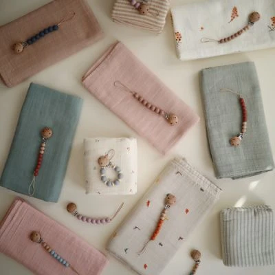 – En mousseline de coton bio prélavée.