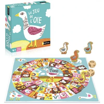 Le jeu de société Jeu de l’oie de la marque Nathan amusera votre enfant grâce à ses jolies couleurs et ses figurines. Qui de la famille sera le premier à emmener son oie au bout du parcours ?