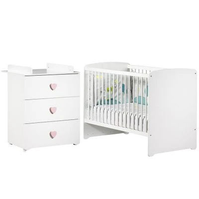 – Contient 1 lit têtes panneaux et 1 commode à langer.