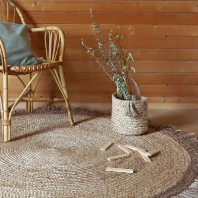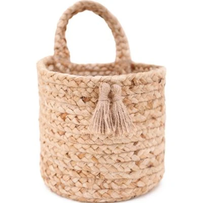 – Petit panier de rangement à suspendre orné de deux pompons.