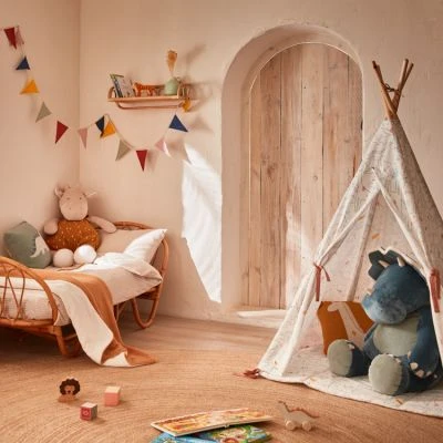 – Différentes matières : crête en mousseline de coton bio et velours côtelé sur le ventre.