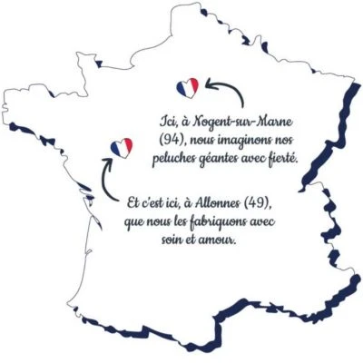 – Livrée avec un certificat d’amitié et une carte de présentation à collectionner, ainsi qu’une étiquette pour les parents expliquant la démarche de relocalisation de la fabrication des peluches de la marque.
